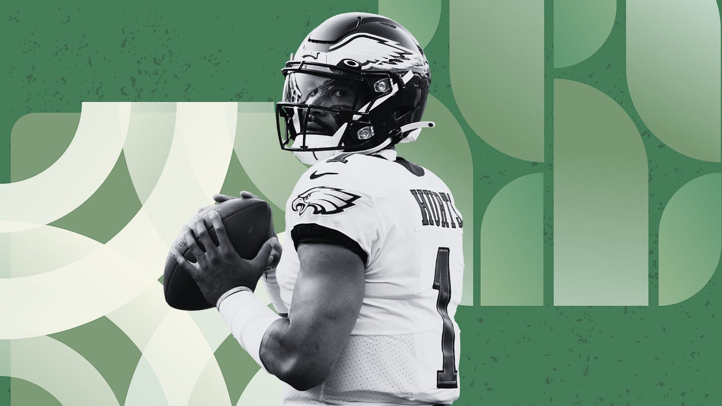 Jalen Hurts has been incredibly successful as a starter, amassing a 46-20 record and a 2:1 touchdown to interception ratio. He has also been one of the most prolific running quarterbacks in the league with four consecutive double digit rushing touchdown seasons. And yet, all these positive indicators of greatness have often left him overlooked compared to his contemporaries.