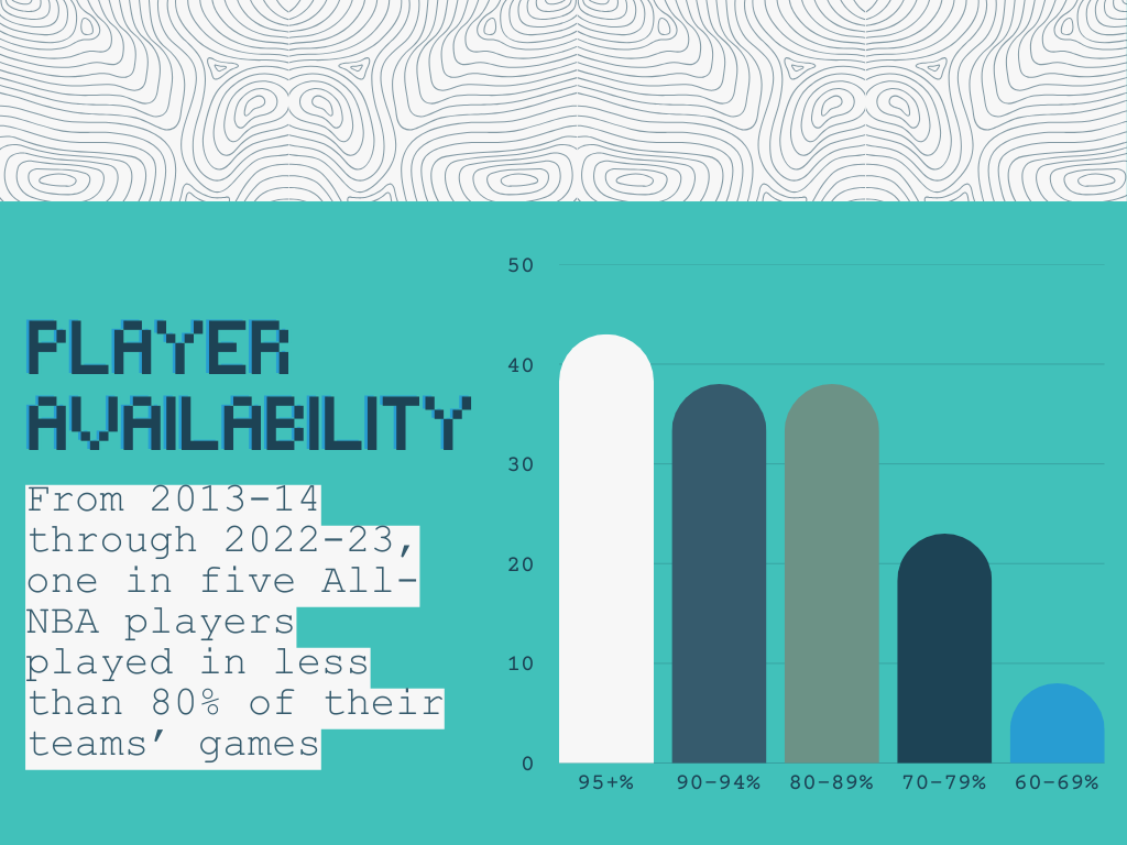 What the 65-game rule asks of superstar NBA players is to be available for 80% of their teams’ games. Looking at All-NBA selections from league and Basketball Reference data over the ten seasons prior to the rule’s implementation in the 2023-24 season, 20.67% of All-NBA players would not have qualified for the accolade if the rule was in place. But these players are still worthy of recognition.